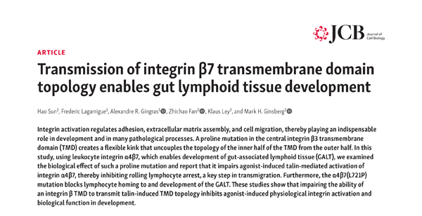 2020年10月27日,加州大學(xué)圣地亞哥分校醫(yī)學(xué)院,聯(lián)合法國圖盧茲大學(xué)和康涅狄格大學(xué)衛(wèi)生院的科學(xué)家在Journal of Experimental Medicine(JEM) 上在線發(fā)表了題為Distinct Integrin Activation Pathways for Effector and Regulatory T cell Trafficking and Function的工作(第一作者為孫昊博士)。
